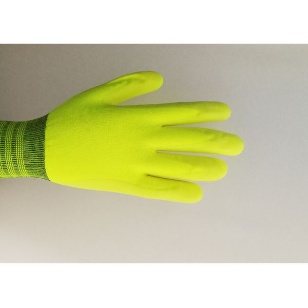 13G Yellow Nylon Rubber Latex Coated Gloves With Anti-Slip Grid Pattern On Palm